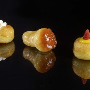 Si tratta di un dolce a semisfera, adagiato su una pasta frolla realizzata con parte di farina integrale, parte 00, e indovinate un po’?